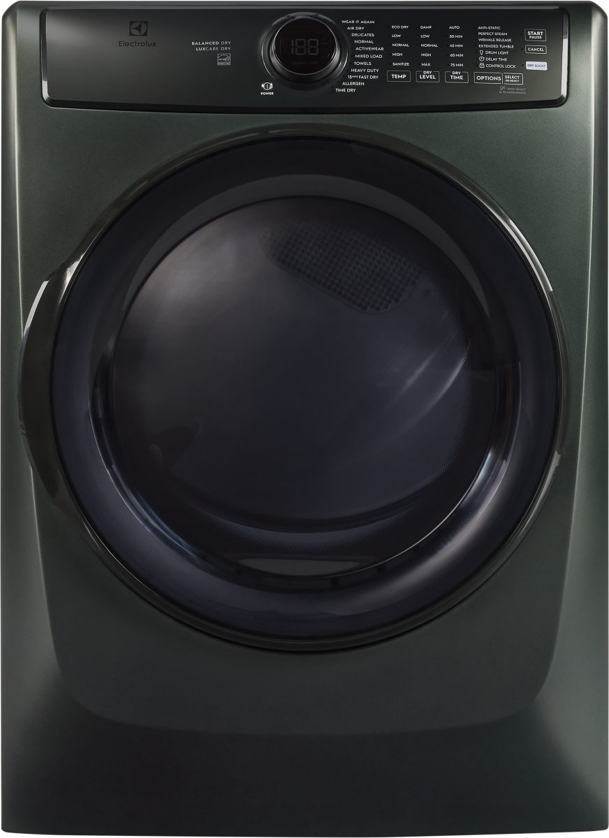 The Electrolux front load electric dryer with Balanced Dry technology prevents temperature spikes to keep fabrics cooler throughout the dry cycle. LuxCare Dry uses an advanced moisture sensor to prevent over or underdrying. The Electrolux Perfect Steam electric dryer with Predictive Dry has a more precise sensor to protect fabrics from overdrying.Read More